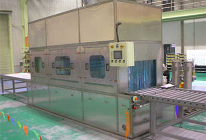 本機特性:連續(xù)通過式清洗、漂洗、除水、干燥。